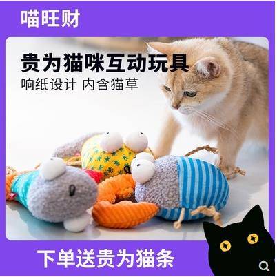 KNIGHT/贵为猫玩具DIY逗猫棒仿真大眼鱼龙虾螃蟹响纸猫咪磨牙玩具