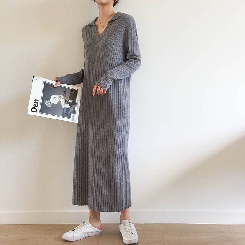 (白弓 )针织长裙 秋季新款长款气质针织衫