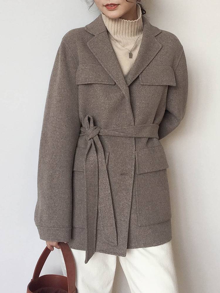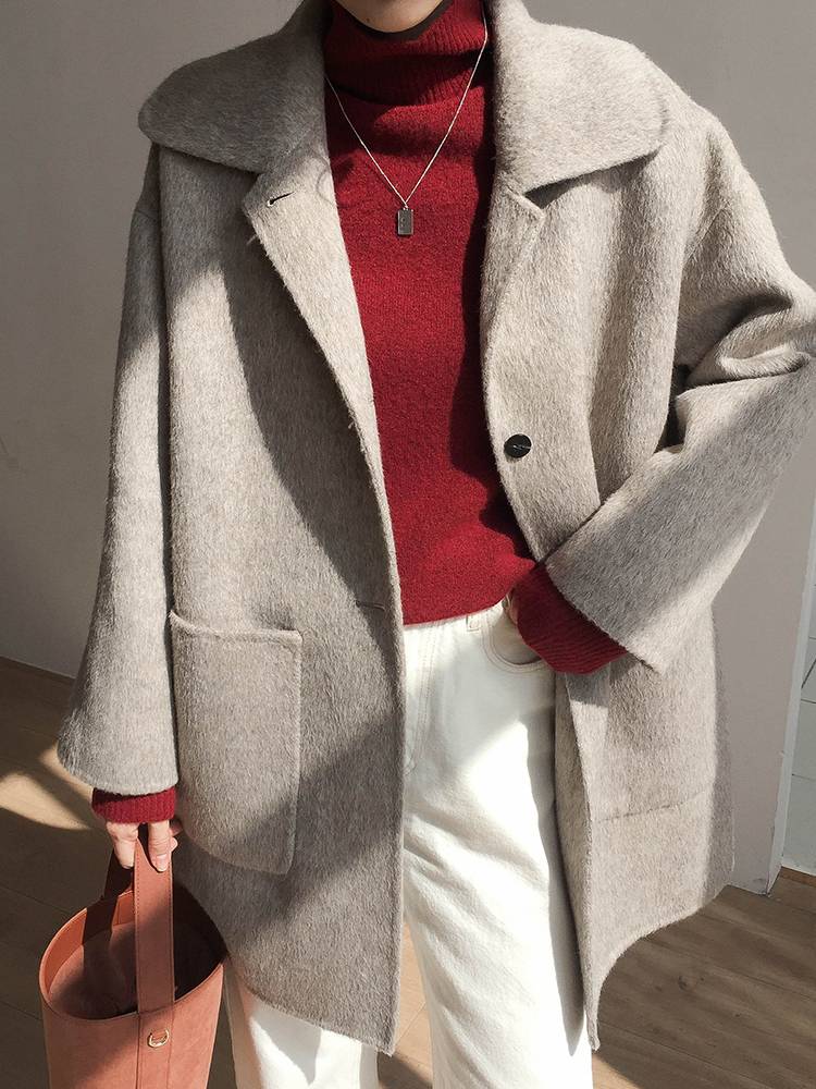 (白弓)秋冬季毛呢外套短款 加厚短款毛呢羊毛西装外套