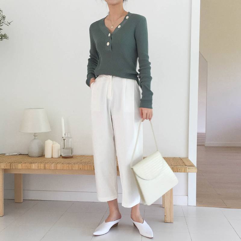 (白弓)新款薄款针织衫 套头修身V领显瘦针织衫