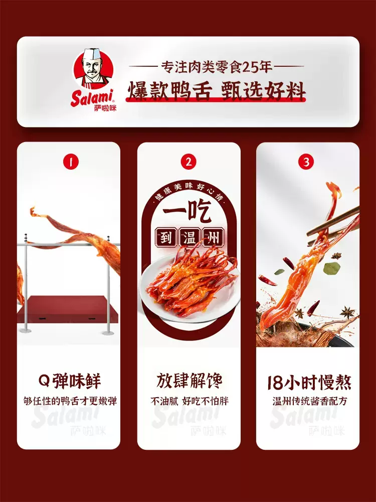 萨啦咪酱鸭舌温州特产零食小吃休闲食品鸭舌头熟食萨拉米鸭货500g