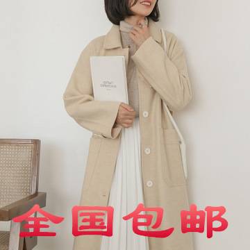 韩版小翻领显瘦H版型中长款毛呢外套女AC1396(包邮)