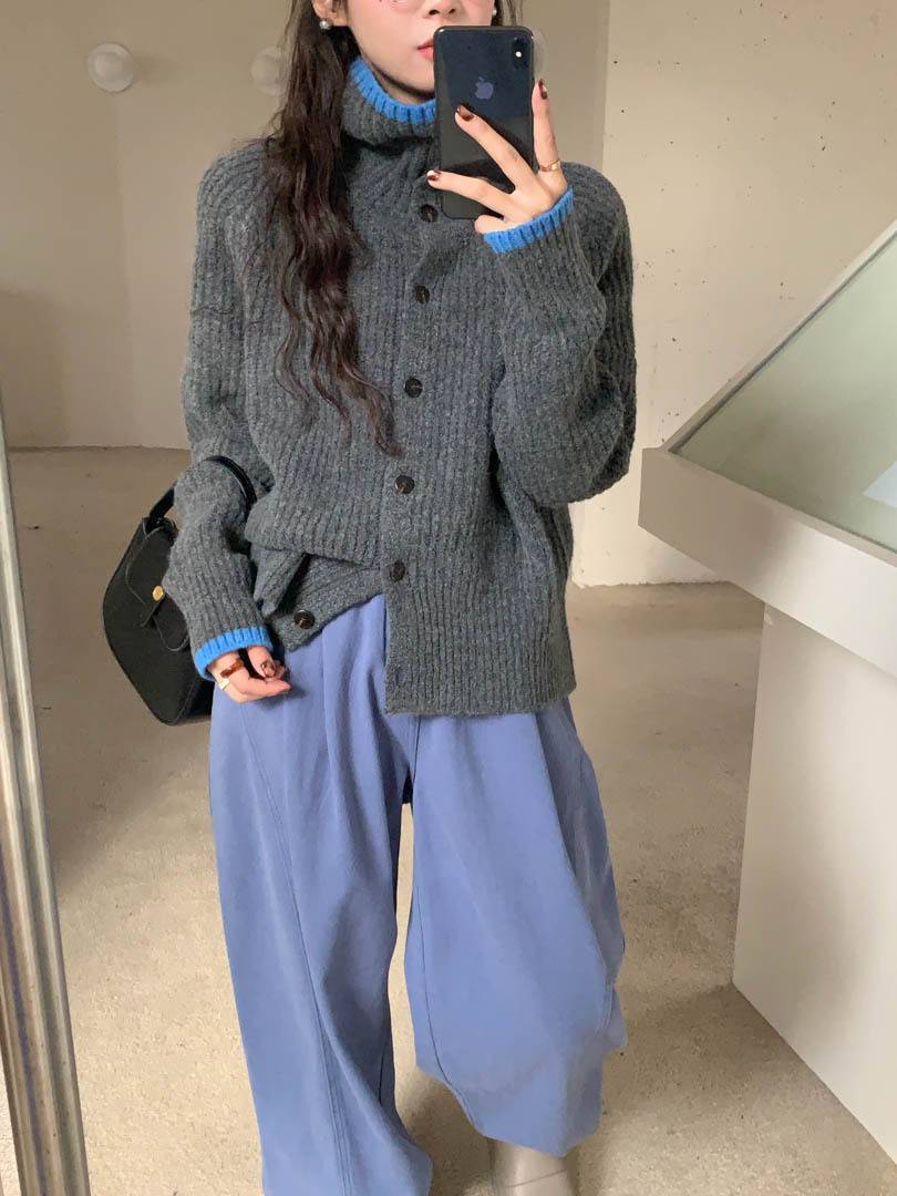 GAGD 羊毛混纺复古毛衣女 24秋冬新款软糯撞色小个子
