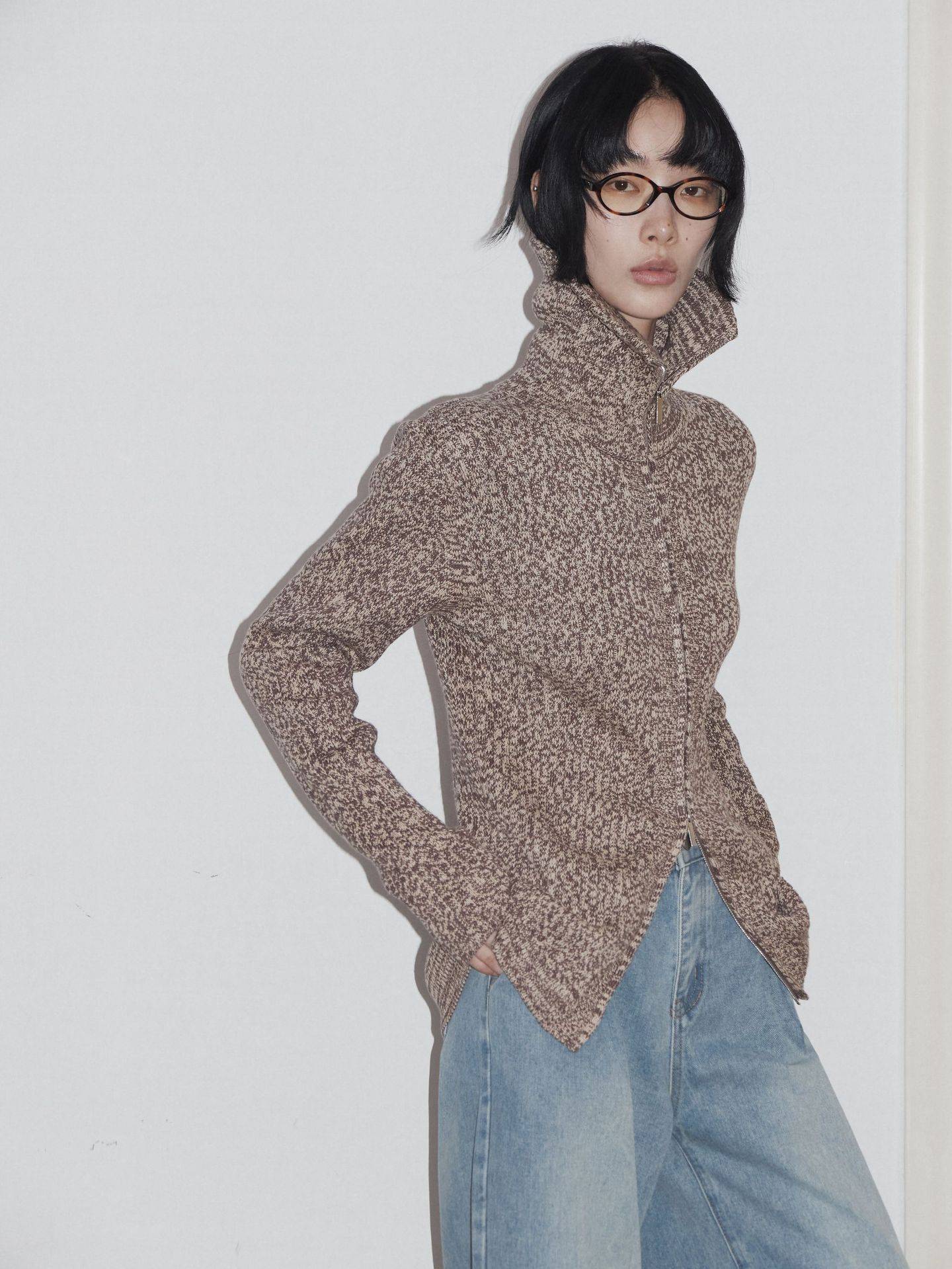 UNITY MODE 设计感大翻领混纺毛衣女秋冬双拉链厚叠穿针织开衫
