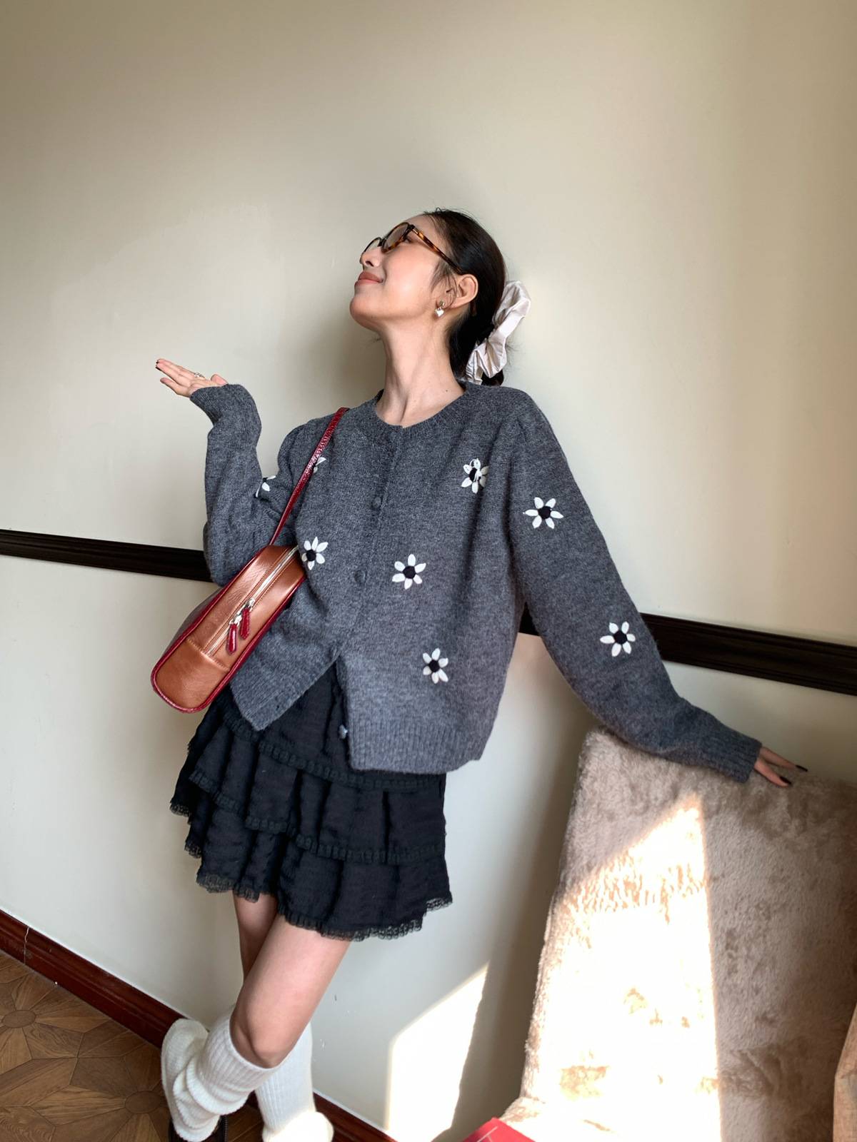 10.11十三行秋冬2024冬季韩版小众甜美减龄针织开衫绣花毛衣F2331