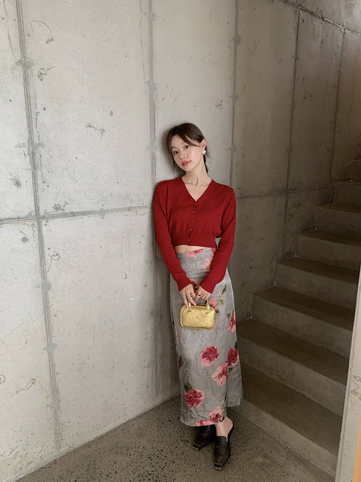 诠释美 NEWOPEN 2024秋季法式复古浪漫精致玫瑰花朵半身裙女F1313
