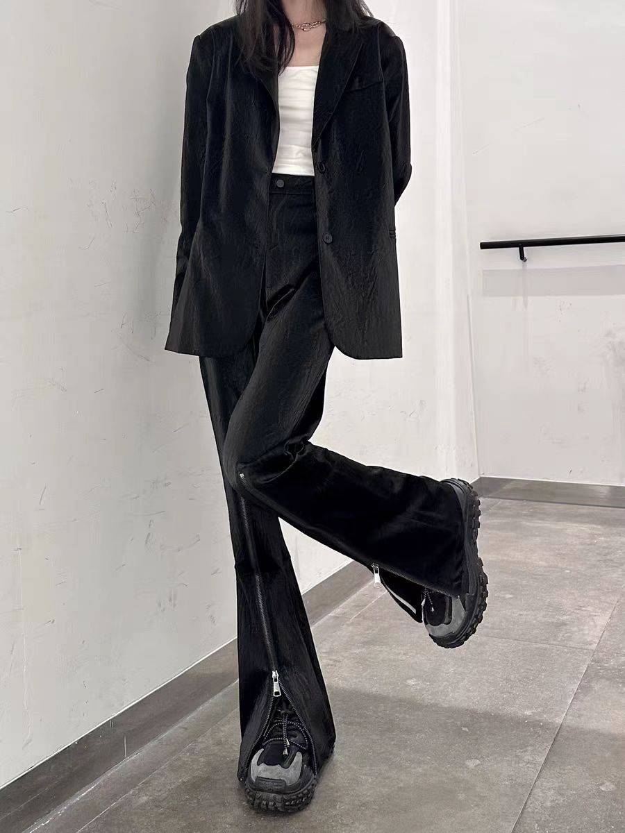 美式高街微喇休闲裤女秋冬新款拉链开叉设计感宽松长裤子