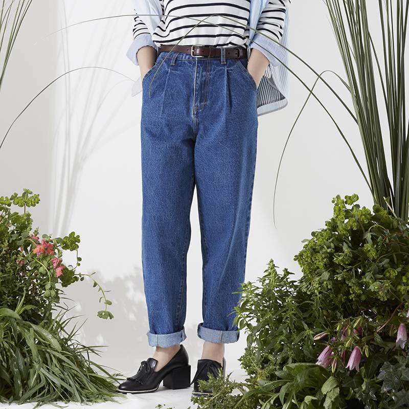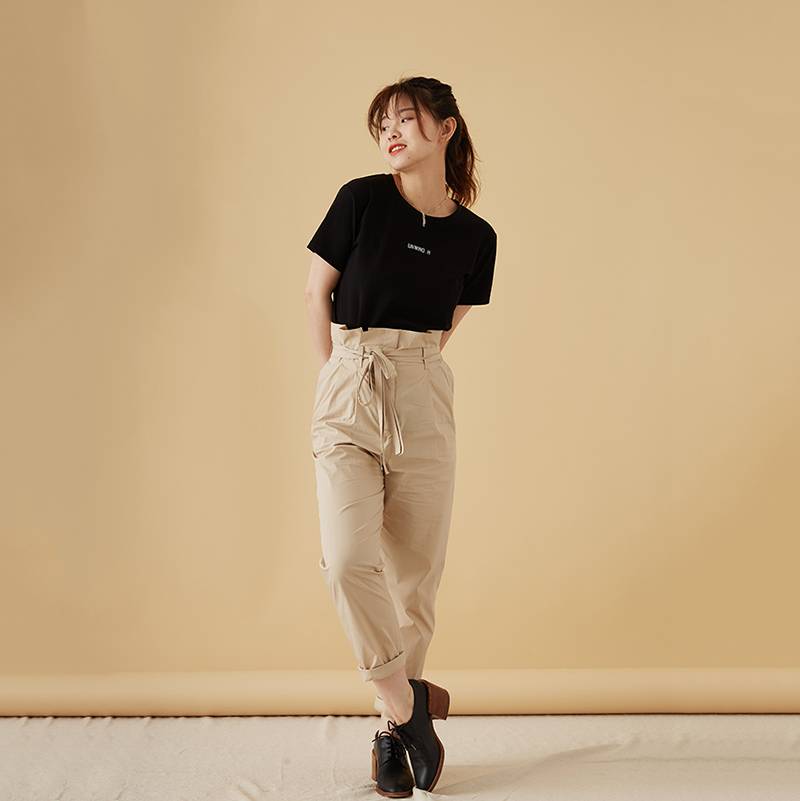 2020春夏新款批发松紧腰高腰牛仔裤女宽松直筒显瘦阔腿长裤