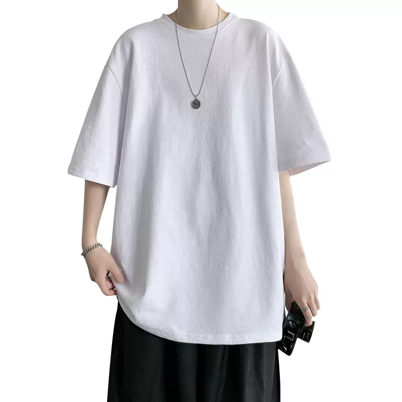 重磅纯棉夏季潮流纯色纯白百搭宽松内搭半袖短袖T恤男打底上衣服