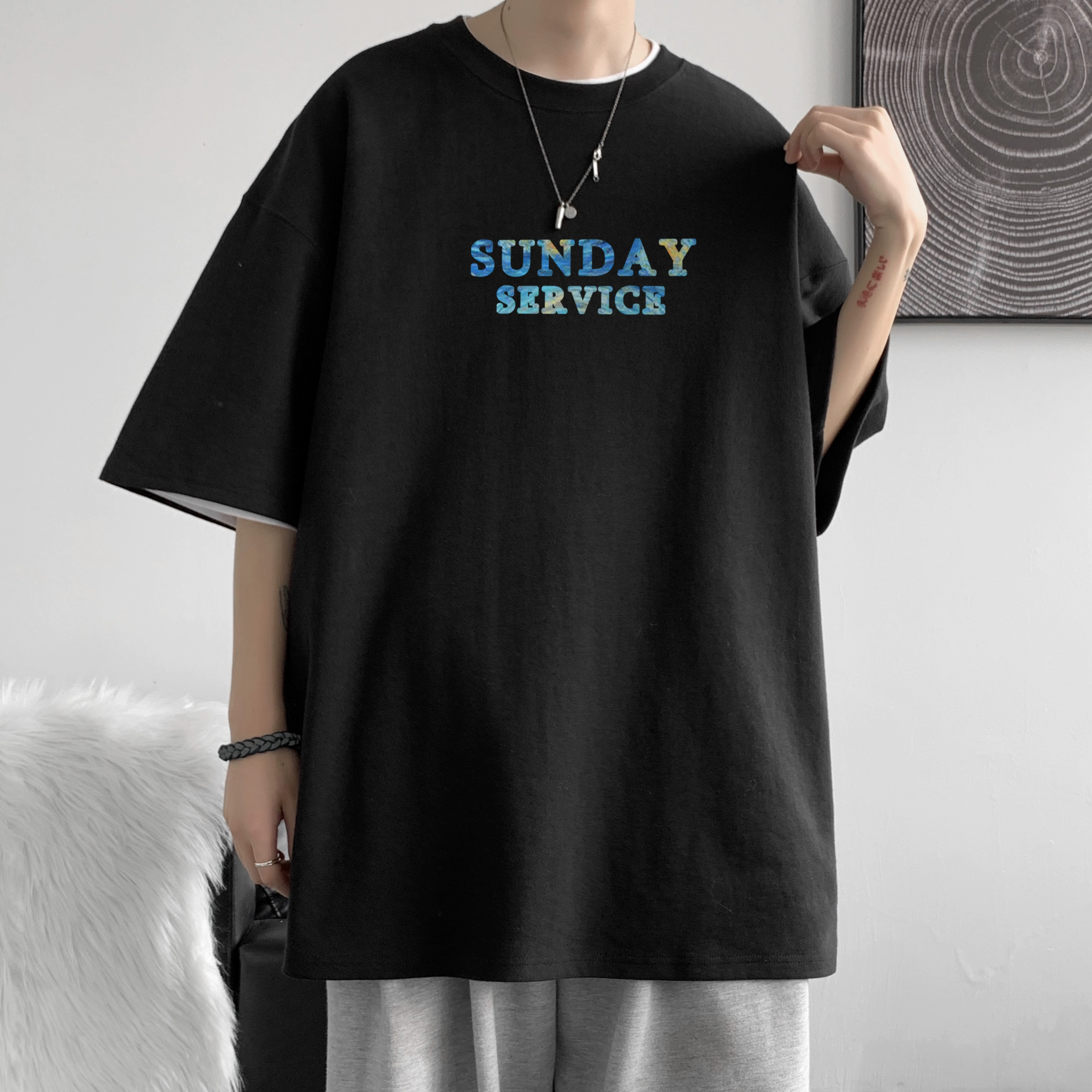 Nuthink欧美街头重磅小众设计t恤男短袖潮牌潮流宽松大码半袖夏季