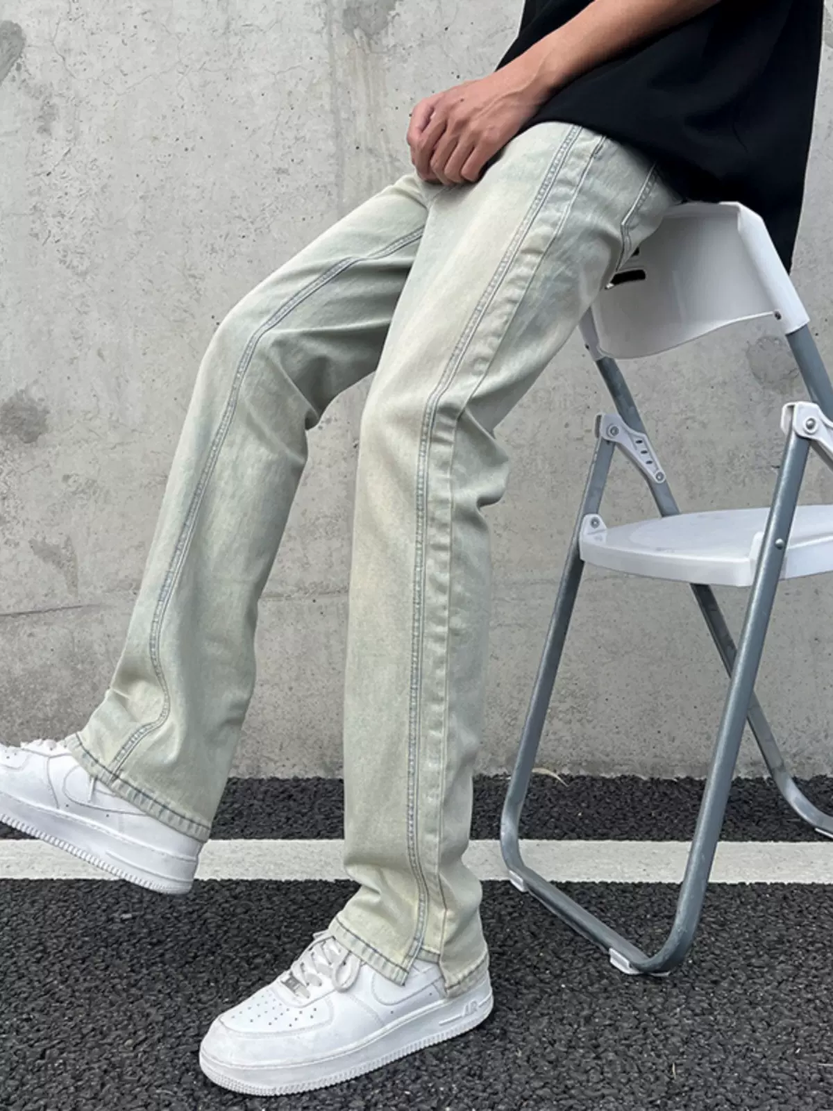 美式高街潮牌复古黄泥染牛仔裤男春季薄款宽松直筒微喇vibe长裤子