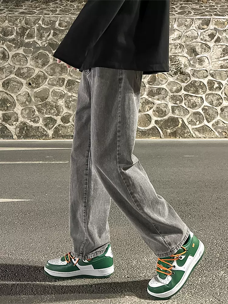 美式高街牛仔裤男宽松阔腿裤男士春季新款港风ins潮牌直筒长裤男