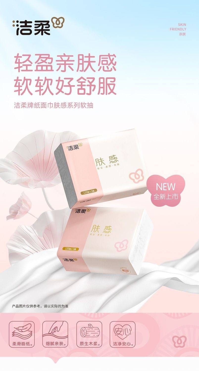 【20包】洁柔抽纸肤感3层120抽无香家用餐巾纸整箱经济卫生纸XS码