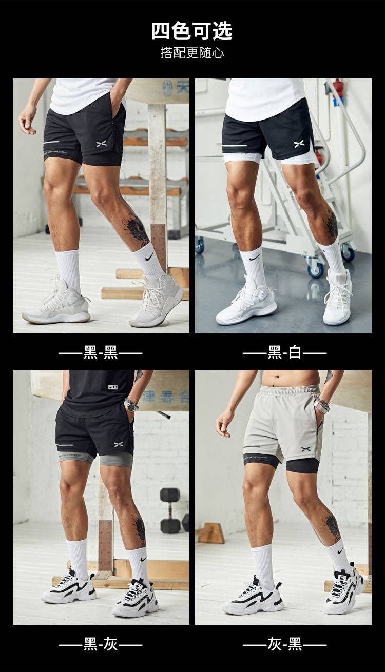 维特客假两件训练美式短裤男健身跑步运动速干透气马拉松三分裤夏