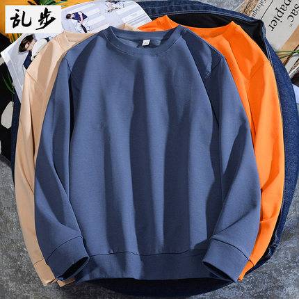 雾霾蓝纯色套头卫衣 2020秋季新款ins圆领长袖T恤宽松男女外套潮