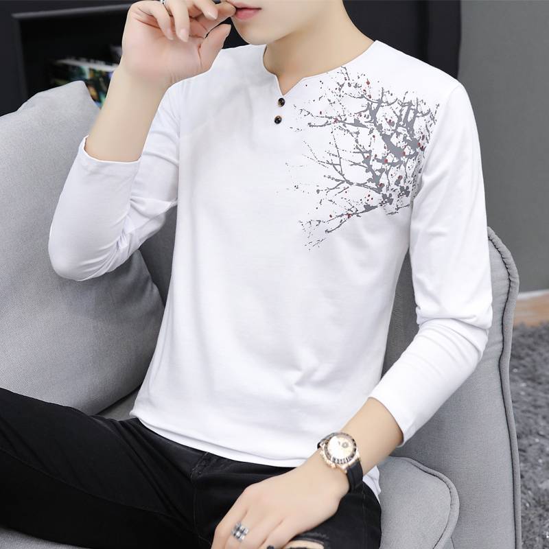 秋季纯棉V字领韩版休闲打底衫潮流外穿男士长袖t恤丅血桖内搭秋衣