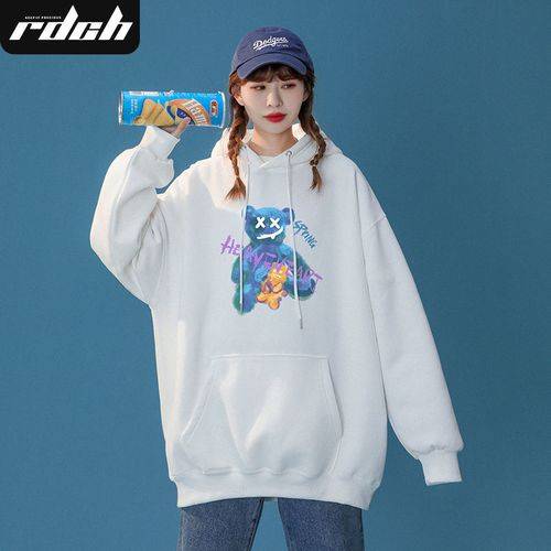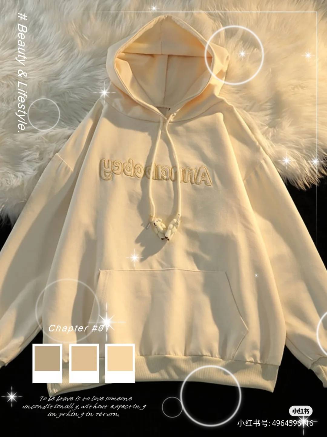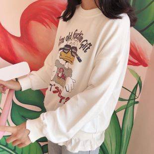 卫衣女宽松连帽新款春秋韩版百搭套头短款卫衣白色上衣外套
