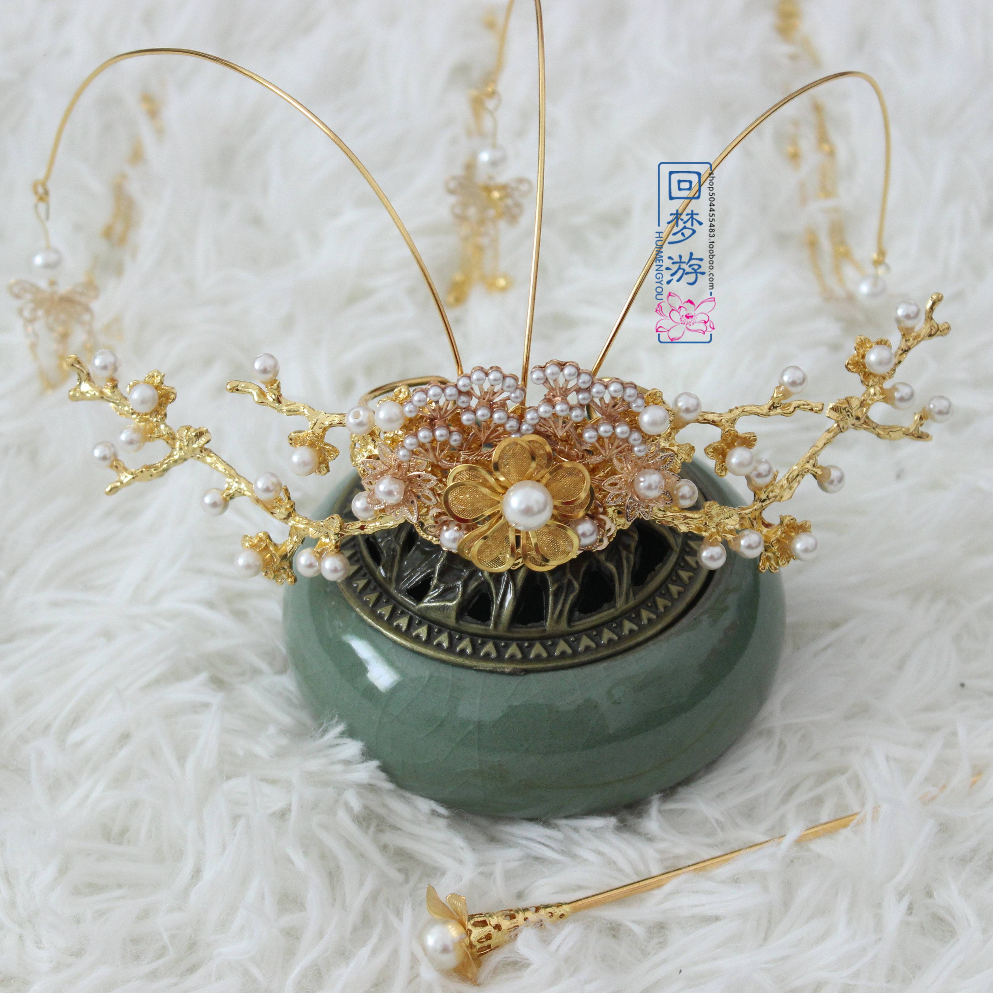 手工古风发饰徐慧三七款长流苏发冠发束汉服头饰发簪子