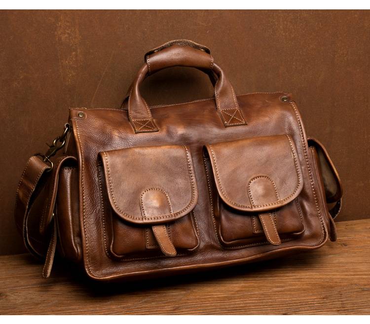 慢时光纯手工擦色手提包头层植鞣牛皮单肩包