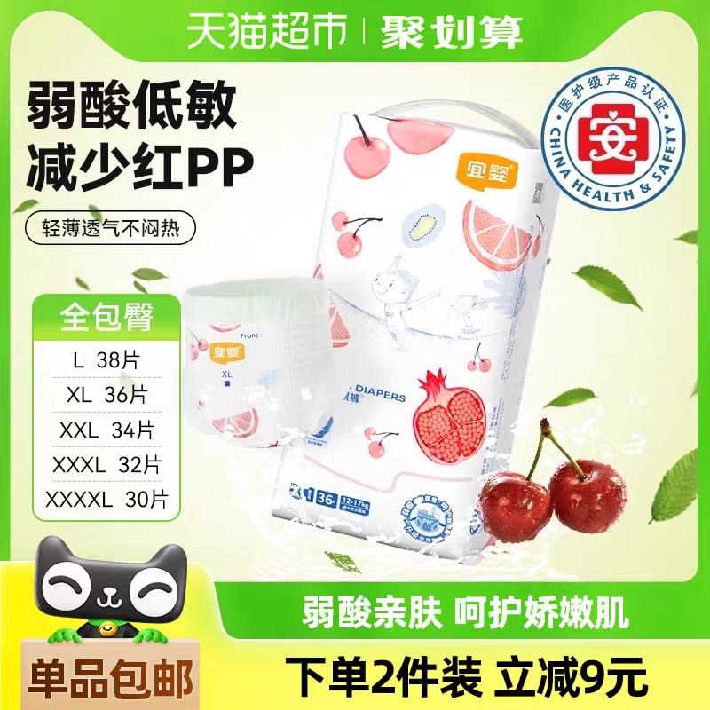 宜婴全包臀弱酸水果婴儿拉拉裤L-4XL超薄透气尿裤宝宝专用尿不湿