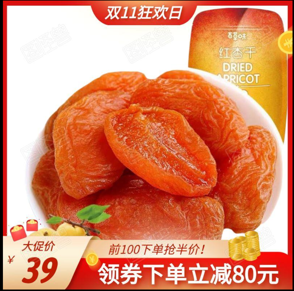 百草味 红杏干 零食蜜饯水果干 杏果果脯杏脯