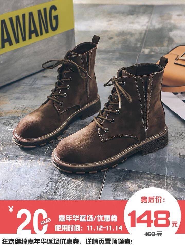 2018冬季女靴平底马丁靴女英伦风复古粗跟女短靴系带机车靴沙漠靴