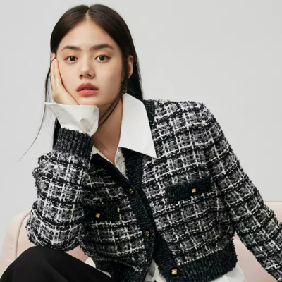 太平鸟小香风针织衫女开衫2022秋季新款毛衣外套开衫格纹提花短款