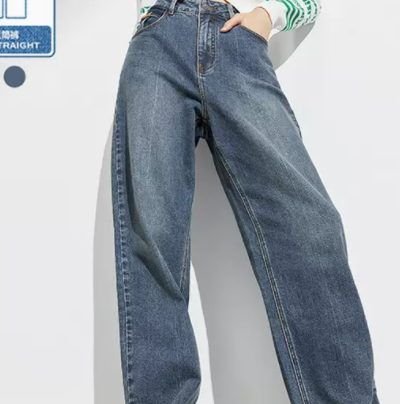 太平鸟复古直筒牛仔裤女2022早秋新款宽松阔腿高腰直筒牛仔长裤