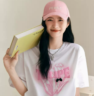 太平鸟短袖T恤女夏季2022新款设计感上衣夏款白色宽松郁金香印花
