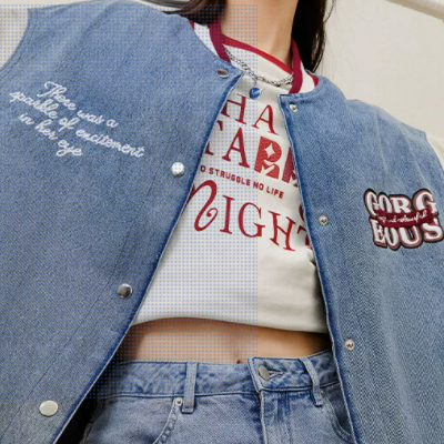 太平鸟牛仔棒球服外套女2022秋装新款宽松拼接外套美式复古男友风
