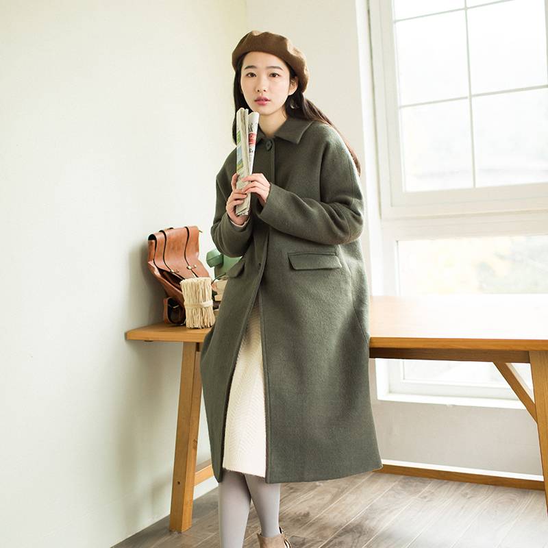冬季新款文艺复古港风宽松毛呢中长款外套大衣加厚过膝长款呢大衣打九折