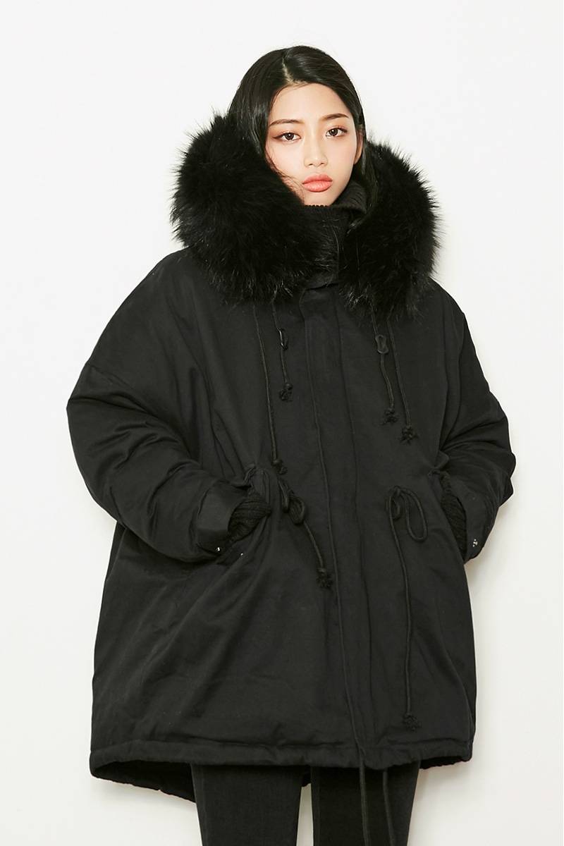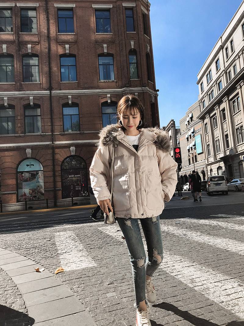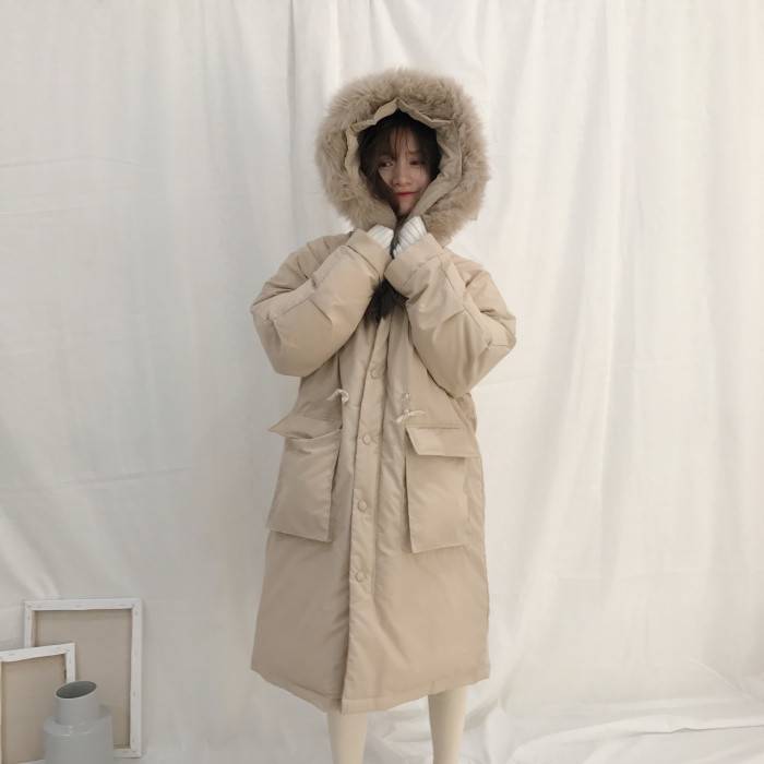 YOYO 韩国冬季新款 狐狸毛领羽绒棉棉衣 长款宽松保暖大衣外套 女