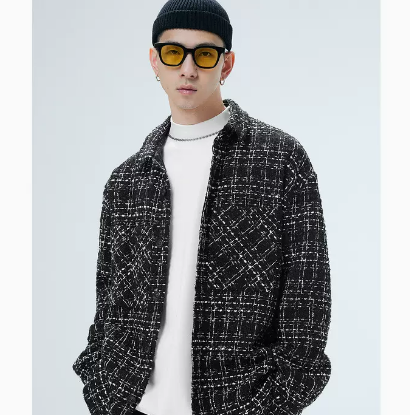 GXG男装 经典小香风外套黑白格翻领夹克时尚潮流 2022年秋季新品
