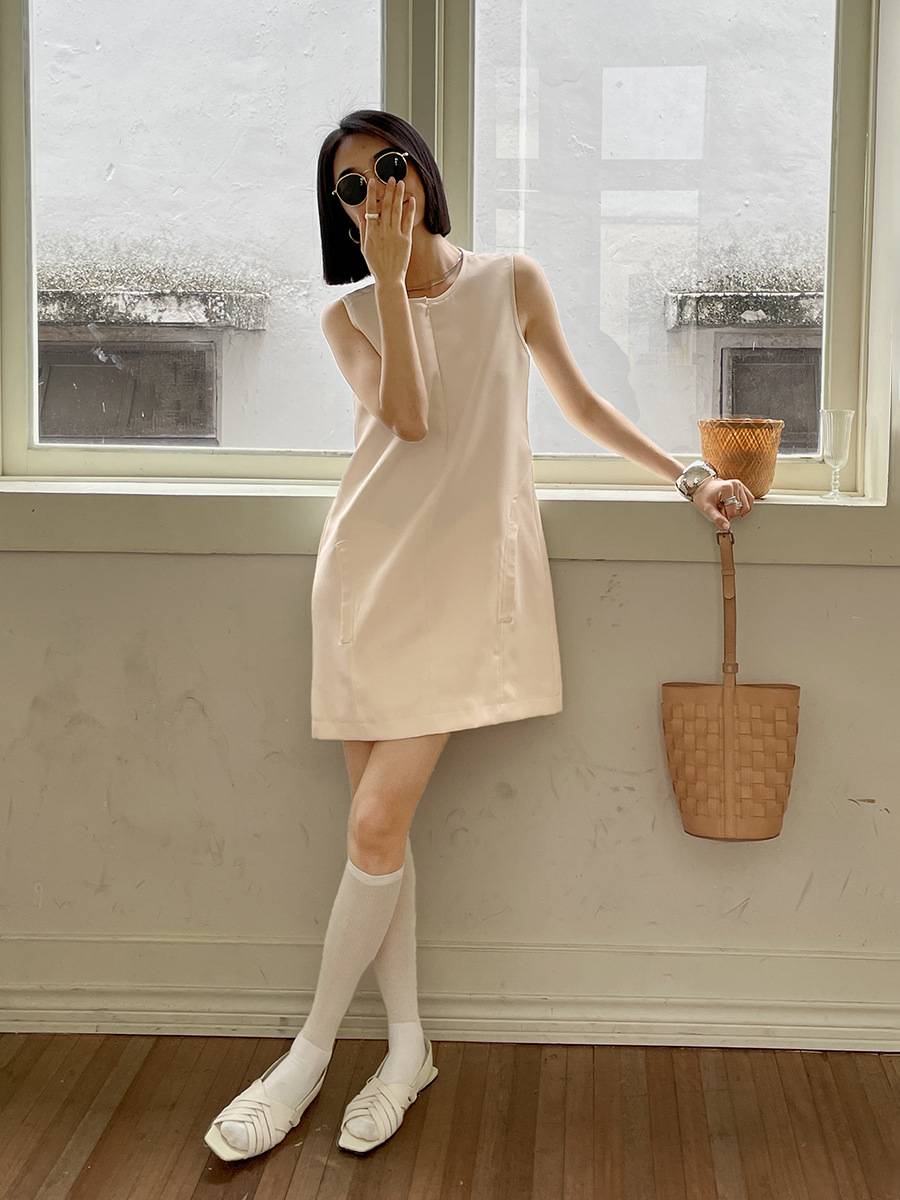 2023夏季新款裙子腰部镂空设计中长款无袖连衣裙女