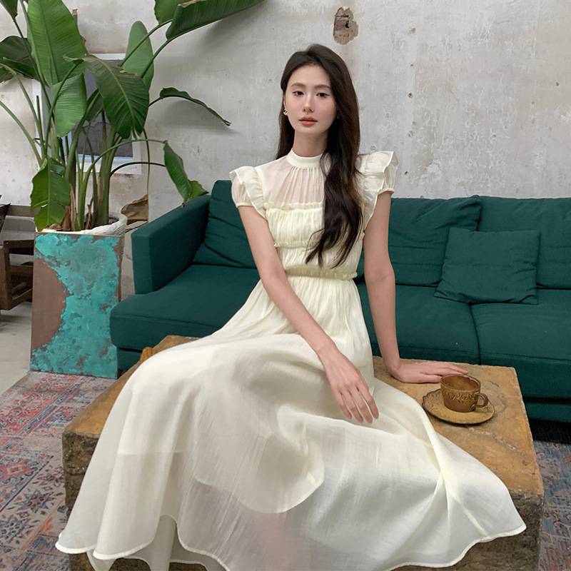 2023夏季新款温柔遮肉显瘦气质高腰大摆连衣裙蛋糕裙子