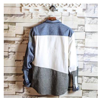 易燃 2018春季潮韩版青年拼色衬衫男7分袖修身休闲翻领衬衣