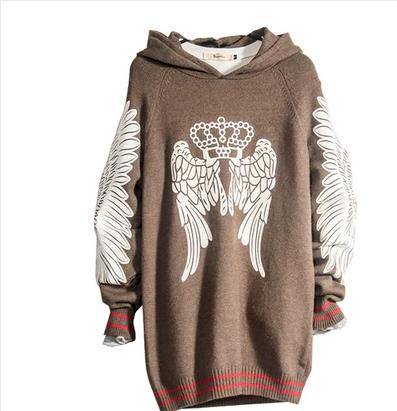 翅膀印花个性潮牌针织连帽衫卫衣男