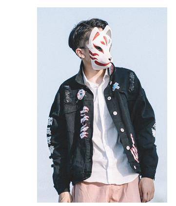 易燃青年 个性帅气破洞牛仔外套男 学生秋装潮牌外套街头夹克衫