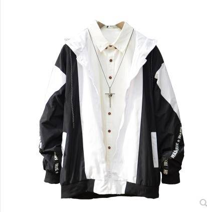 易燃 潮风黑白休闲连帽夹克男2018秋季青年潮修身拼色外