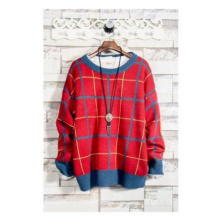易燃青年 撞色大格子秋冬毛衣男 帅气学生百搭针织衫2018新款