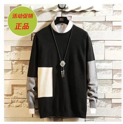易燃 简约拼色毛衣男 秋冬季青年潮保暖修身学生打底情侣针织衫