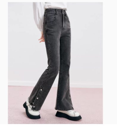 中腰微喇水蓝色牛仔裤舒适软牛仔