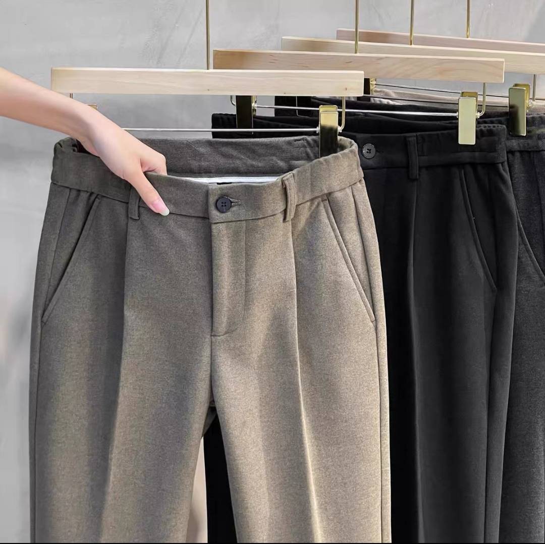 ins韩版毛呢长裤男士直筒百搭九分休闲裤秋冬新款磨毛加厚小西裤