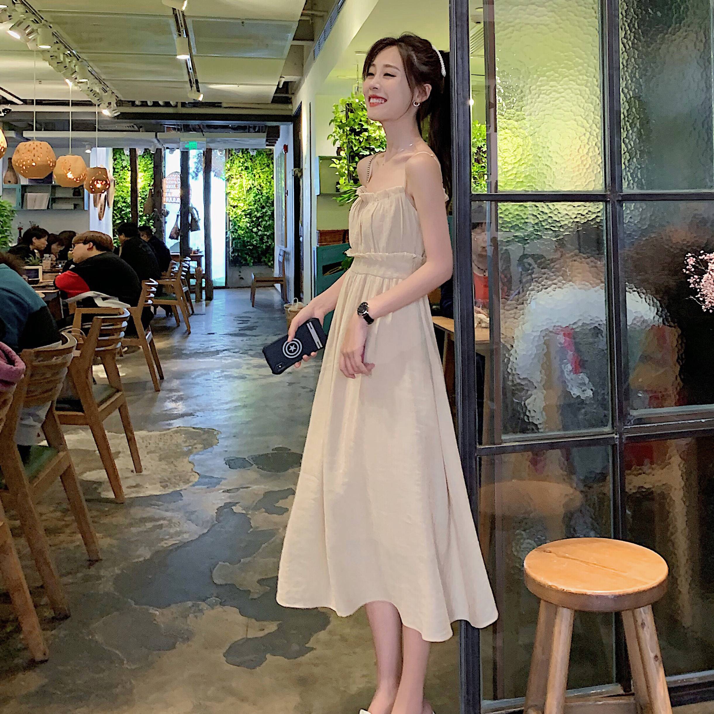 2019夏季新品吊带抹胸连衣裙中长款抽褶打底裙女潮