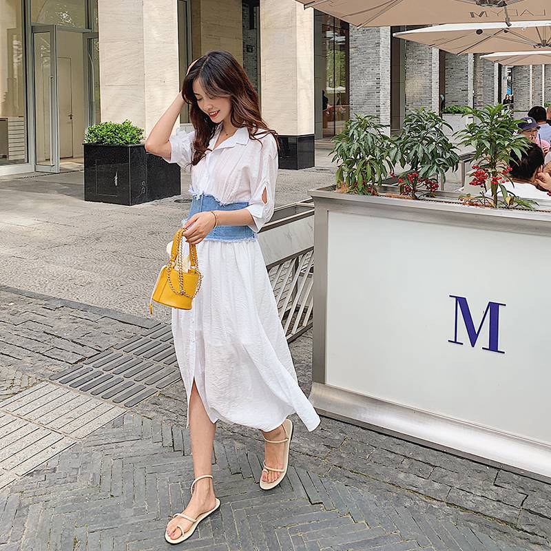 2019春夏 主推新款原创牛仔拼接衬衣裙