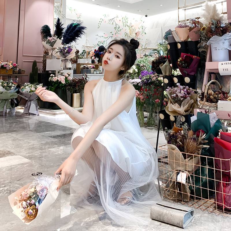 2019夏季新款挂脖纱裙连衣裙 陆小姐的店主推款