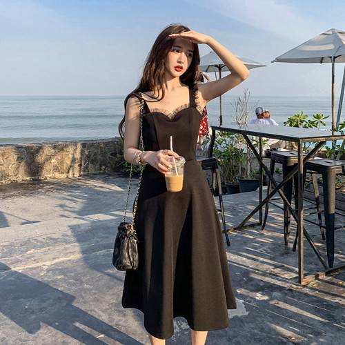 网红2019夏季新款名媛气质露肩礼服性感吊带连衣裙女装