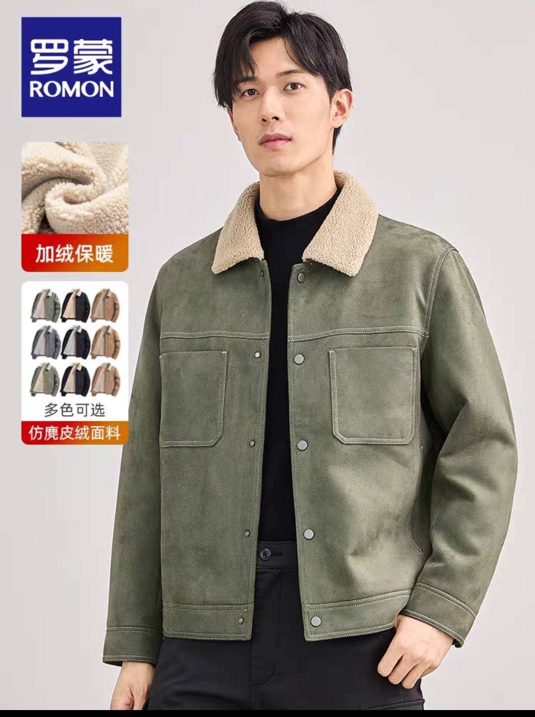 【仿麂皮绒】罗蒙男士短款保暖加棉夹克2023秋冬新款加厚休闲外套