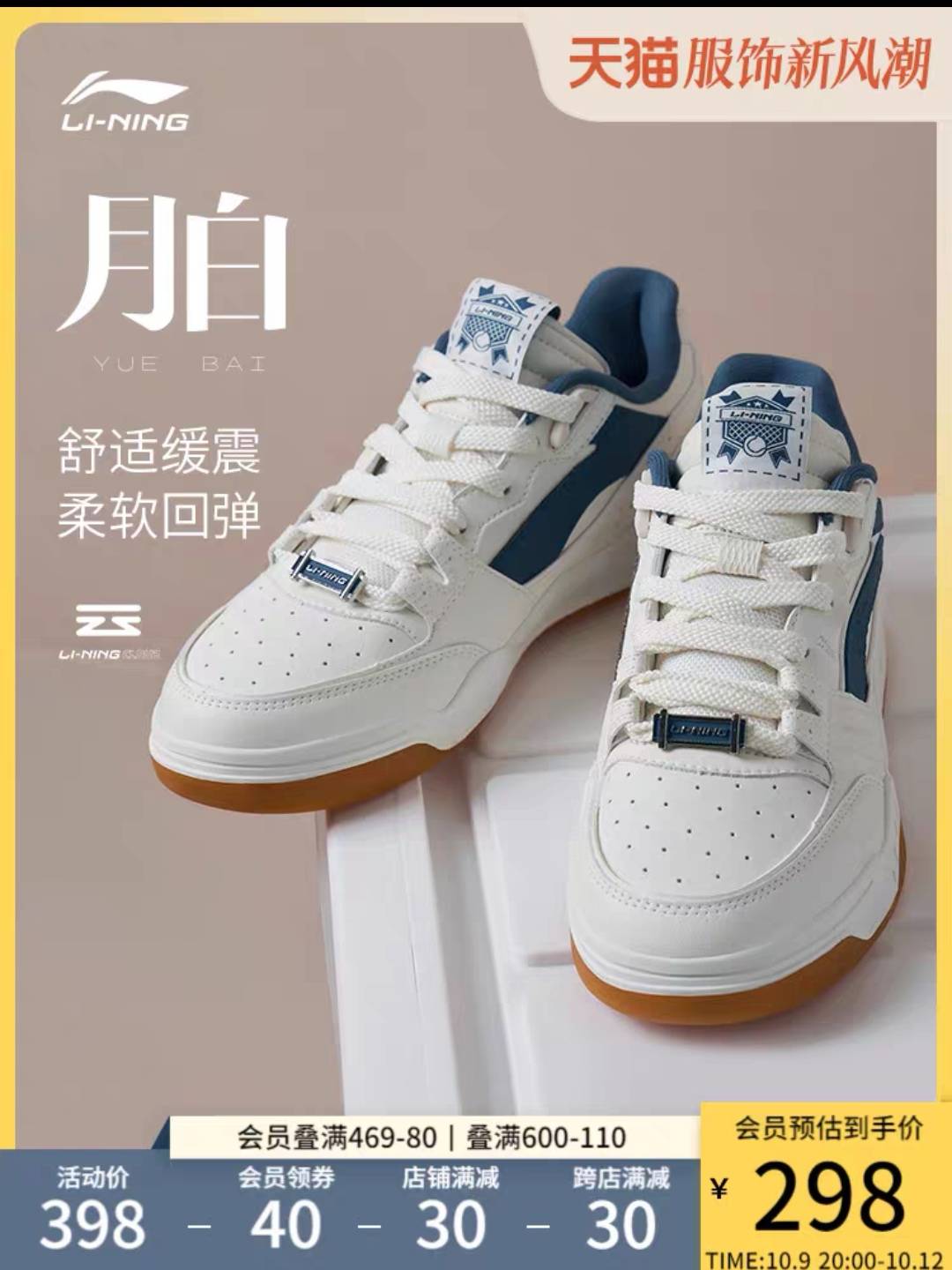 李宁月白 | 板鞋男鞋女鞋情侣鞋子百搭小白鞋运动鞋男款休闲鞋男