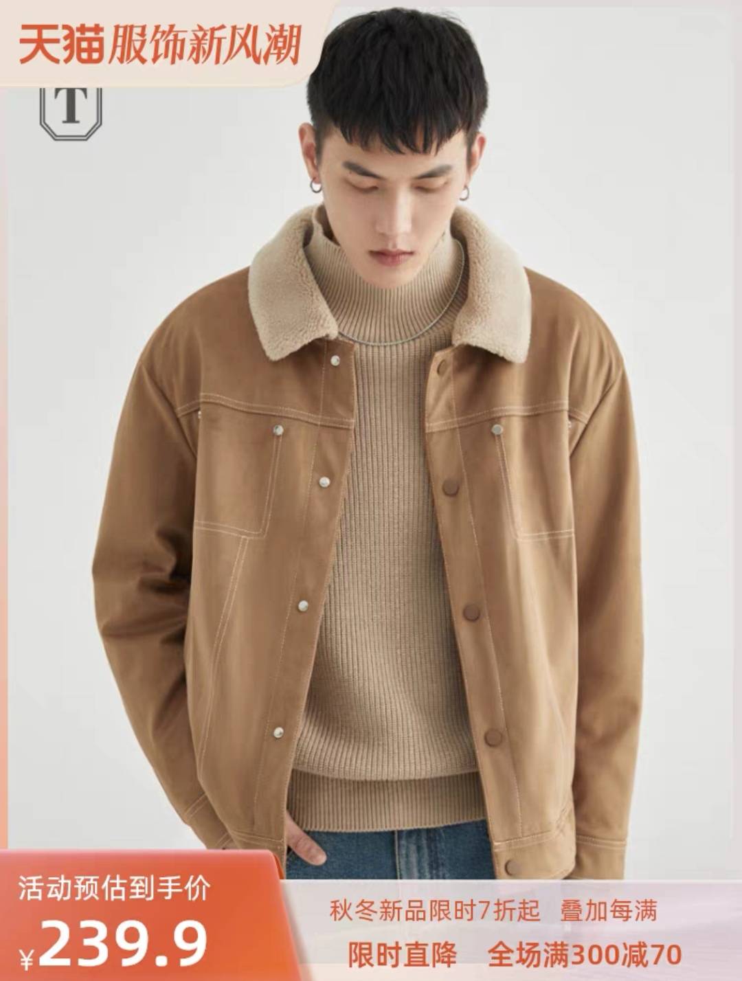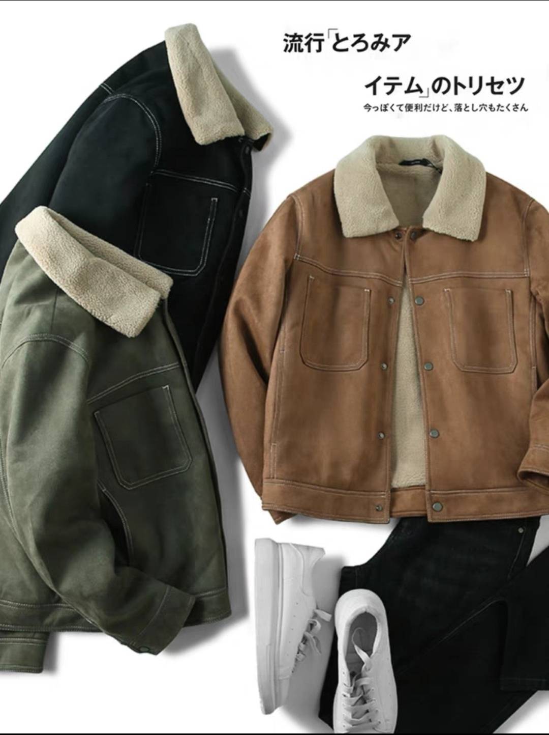 王簰“麂皮绒”!轻工装复古!外贸男装秋冬加绒加厚保暖夹克外套